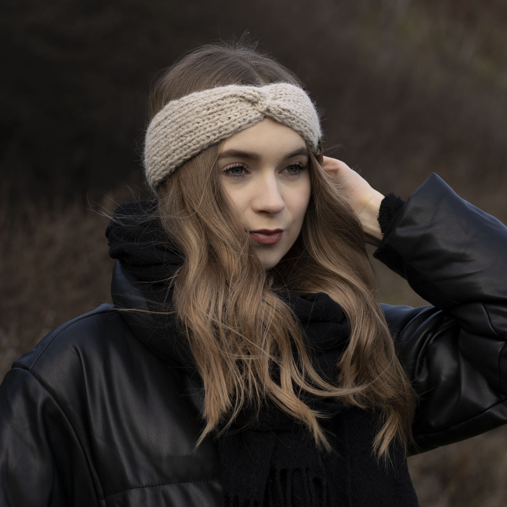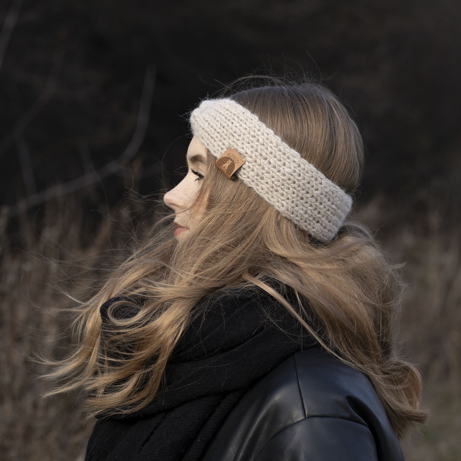 Naturalna opaska z wełny alpak dostępna jest również w czterech innych naturalnych kolorach: beżowym, brązowym, ciemnym brązie i szarym – każdy w pełni naturalny, niebarwiony, dzięki czemu zachowuje piękno naturalnych odcieni wełny alpak.